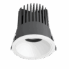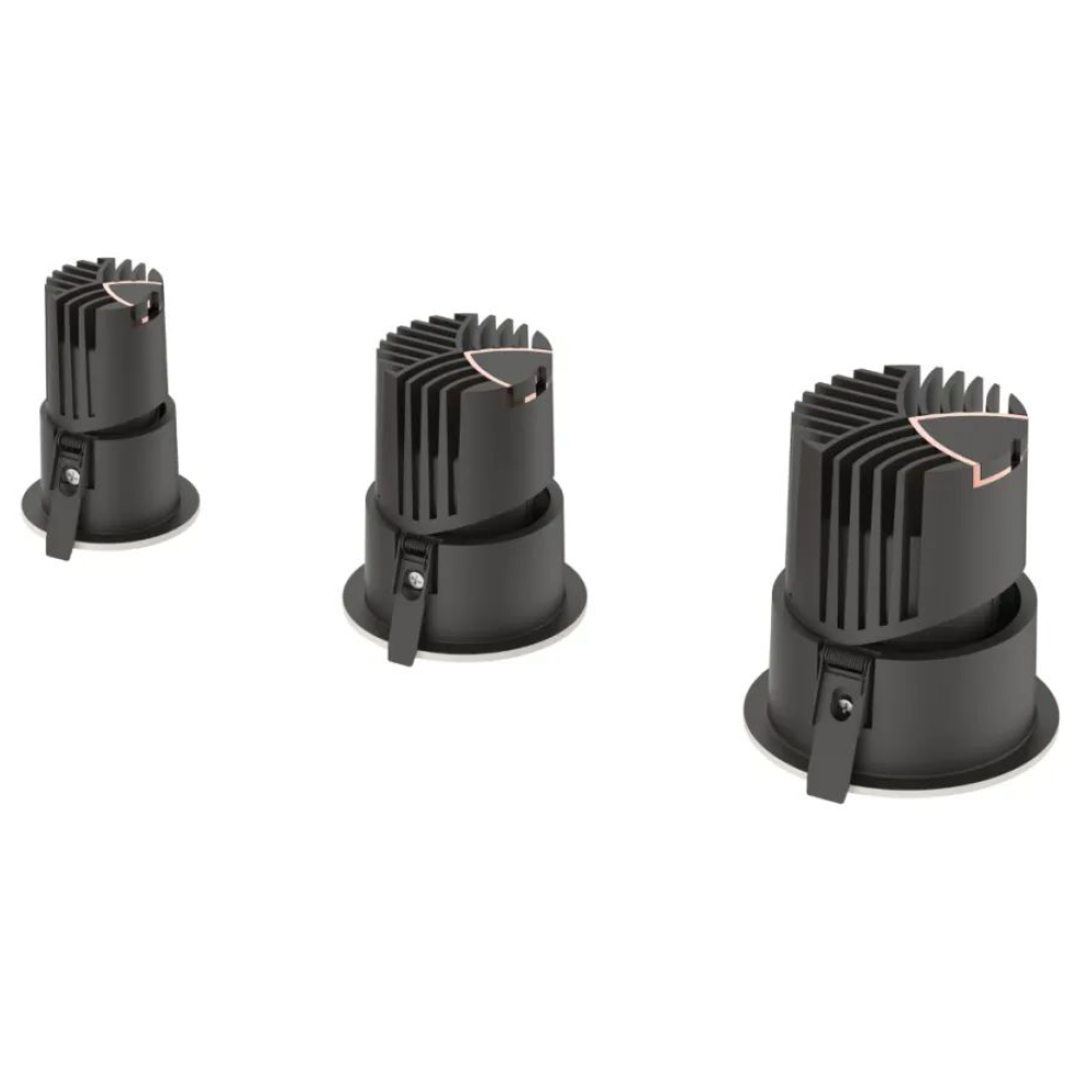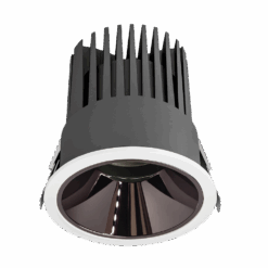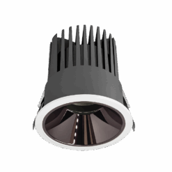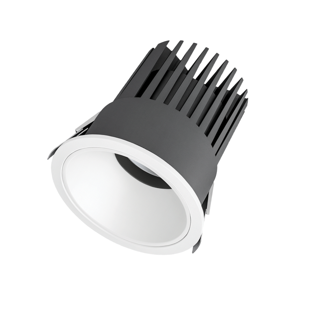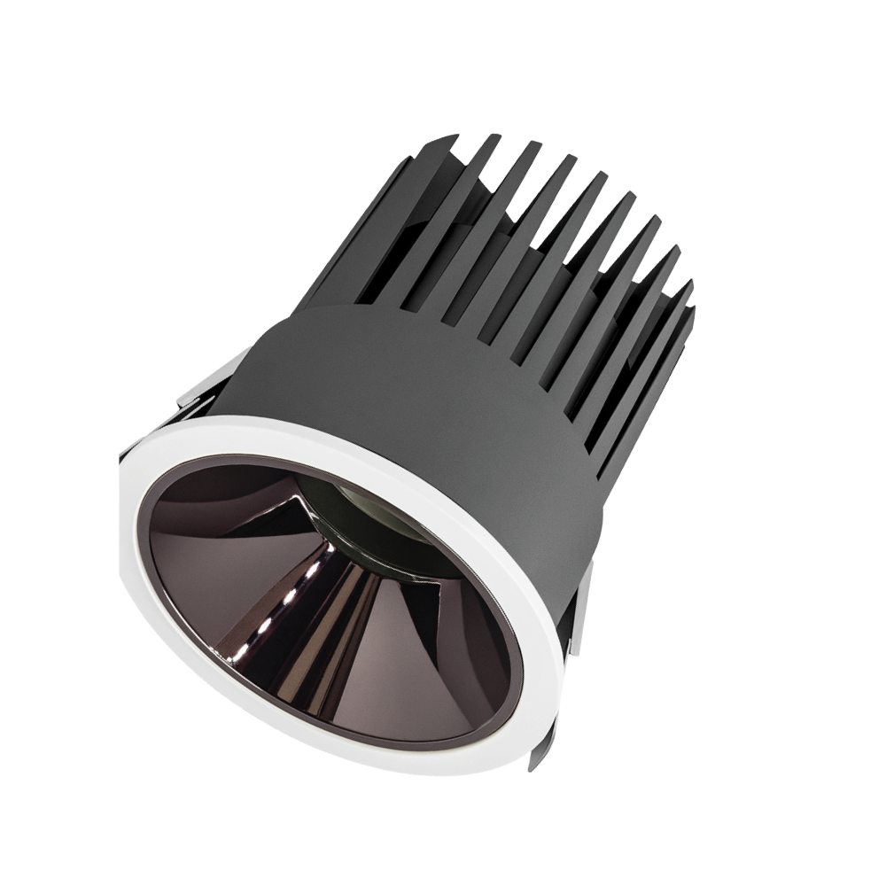 Thân đèn nhôm đúc tản nhiệt sâu, kết hợp màu viền trắng và màu chóa đen – trắng tùy chọn, giúp dễ dàng hòa hợp trong mọi phong cách thiết kế.