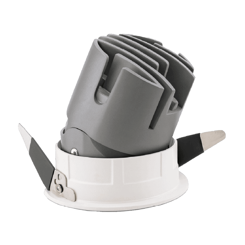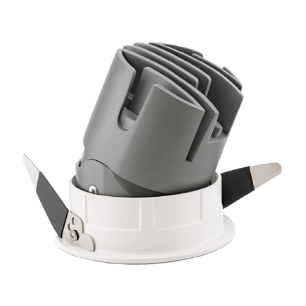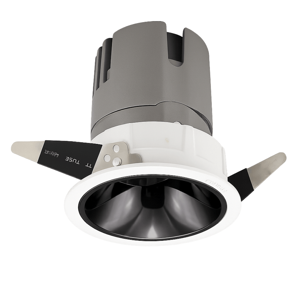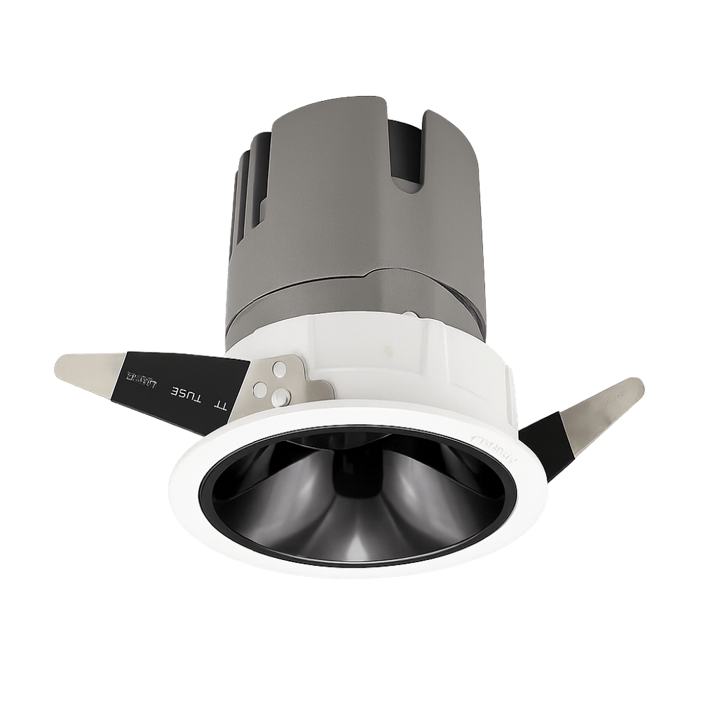 Thiết kế thân nhôm đúc, chóa sâu chống chói màu trắng tinh tế hoặc đen độc đáo, góc chiếu 24° – 38°, tạo điểm nhấn cho showroom, biệt thự, khách sạn, trung tâm thương mại.