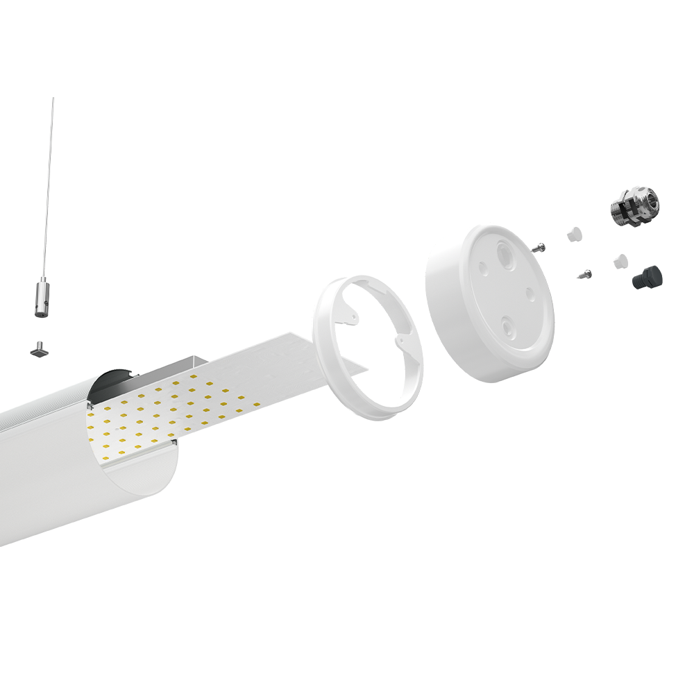 Thiết kế thân trụ tròn tinh gọn, màu trắng thanh lịch, chiều dài 1200mm, phù hợp lắp đặt cho nhà xưởng, hành lang, tầng hầm và kho lạnh. V2LTP không chỉ bền bỉ trước thời gian mà còn nâng tầm không gian kỹ thuật bằng ánh sáng chuẩn mực và tinh tế.