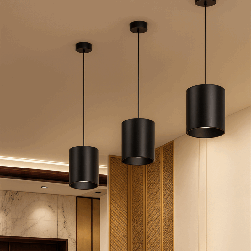 Thân đèn trụ tròn nhôm sơn tĩnh điện, kết hợp vỏ màu đen – trắng cùng với sự lựa chọn chóa đèn đen – trắng – crom tạo điểm nhấn sáng trọng và độc đáo, phù hợp cho nhà hàng, quầy lễ tân, quán cà phê, showroom hay khu vực trang trí.