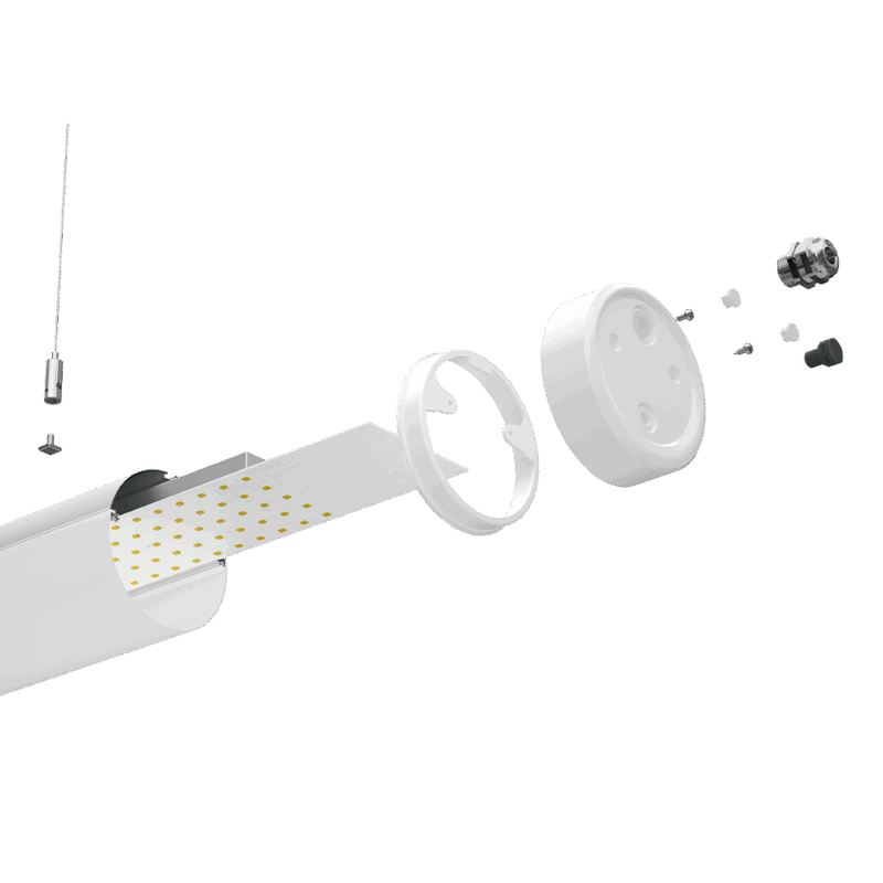 Thiết kế thân trụ tròn tinh gọn, màu trắng thanh lịch, chiều dài 1200mm, phù hợp lắp đặt cho nhà xưởng, hành lang, tầng hầm và kho lạnh. V2LTP không chỉ bền bỉ trước thời gian mà còn nâng tầm không gian kỹ thuật bằng ánh sáng chuẩn mực và tinh tế.