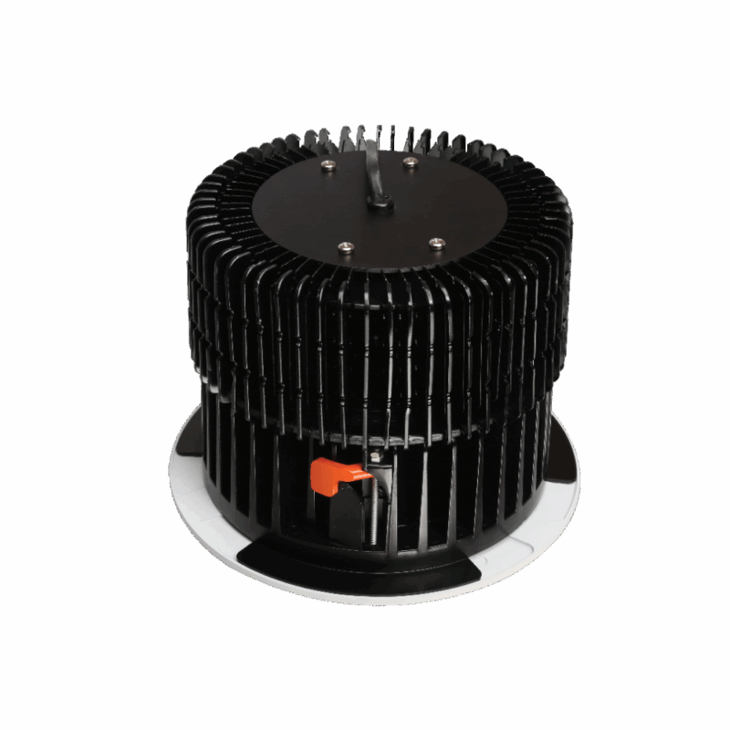 Thân nhôm đúc phủ sơn tĩnh điện trắng kết hợp cánh tản nhiệt sâu, giúp làm mát nhanh và đảm bảo tuổi thọ vượt trội.