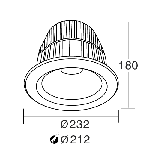 Với thiết kế Ø232mm – cao 180mm, sản phẩm vừa mạnh mẽ vừa thẩm mỹ, tạo điểm nhấn hiện đại trong không gian quy mô lớn.