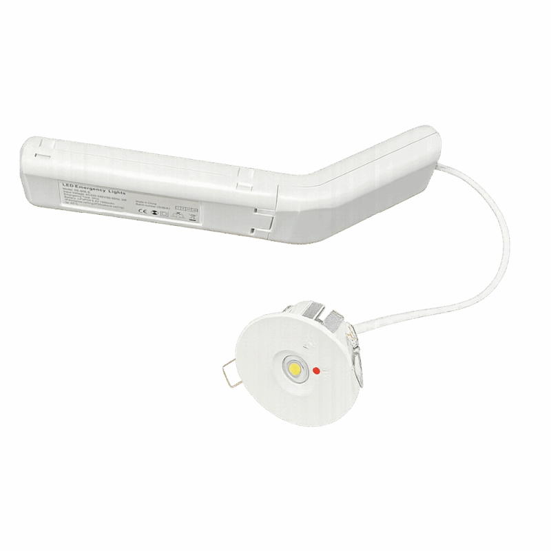 Thân đèn âm trần nhỏ gọn, vật liệu cách điện – chống cháy, đạt tiêu chuẩn CE / RoHS / IP20, phù hợp lắp đặt cho hành lang, cầu thang, lối thoát hiểm hoặc khu vực kỹ thuật.